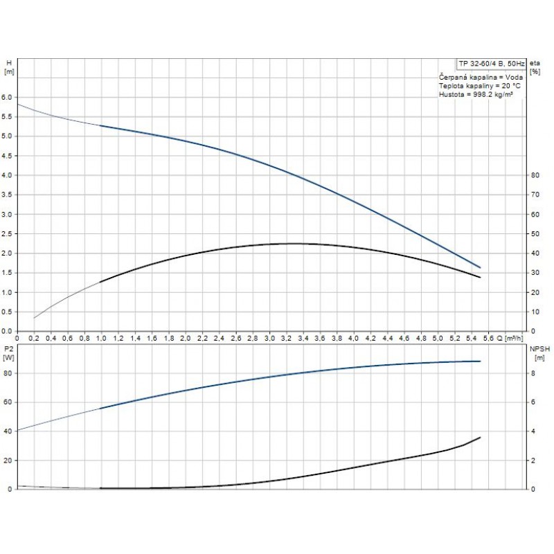 Údaje čerpadla pre dané otáčky: 1370 ot / min
