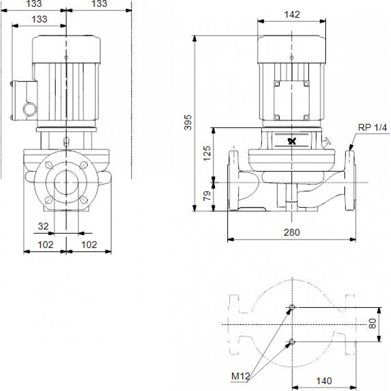 Grundfos In-Line čerpadlo TP 32-60/4 B 0,25 kW 280mm 96463882Použitie: