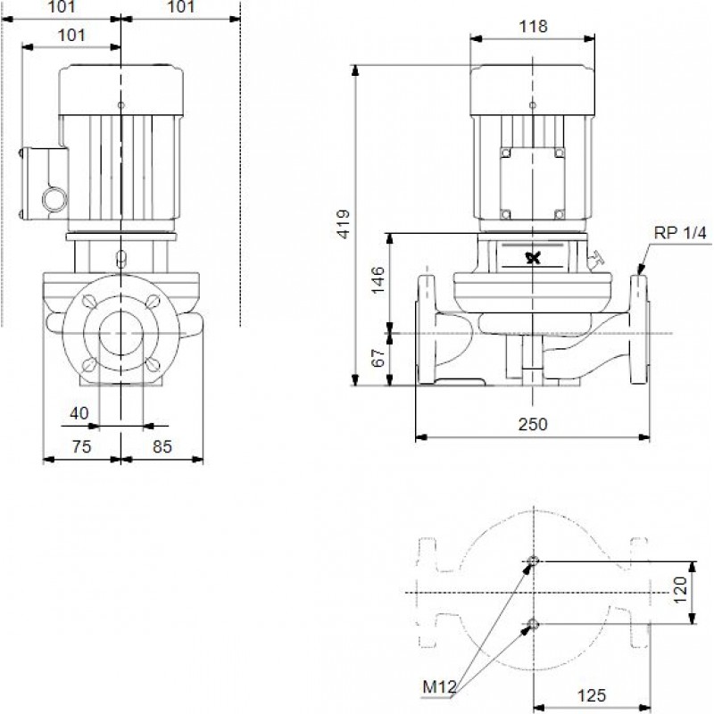 Grundfos In-Line čerpadlo TP 40-30/4 B 0,12 kW 250mm 96401891Použitie: