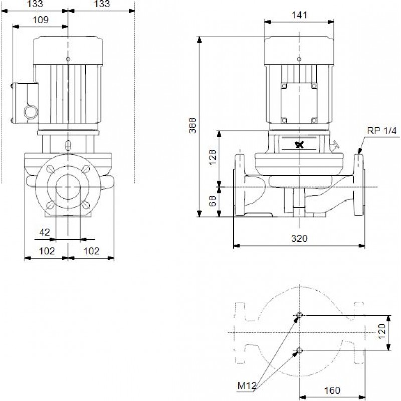Grundfos In-Line čerpadlo TP 40-90/4 B, 0.25 kW, 3 x 220-240D/380-415Y V, 320 mm 96492030Použitie: