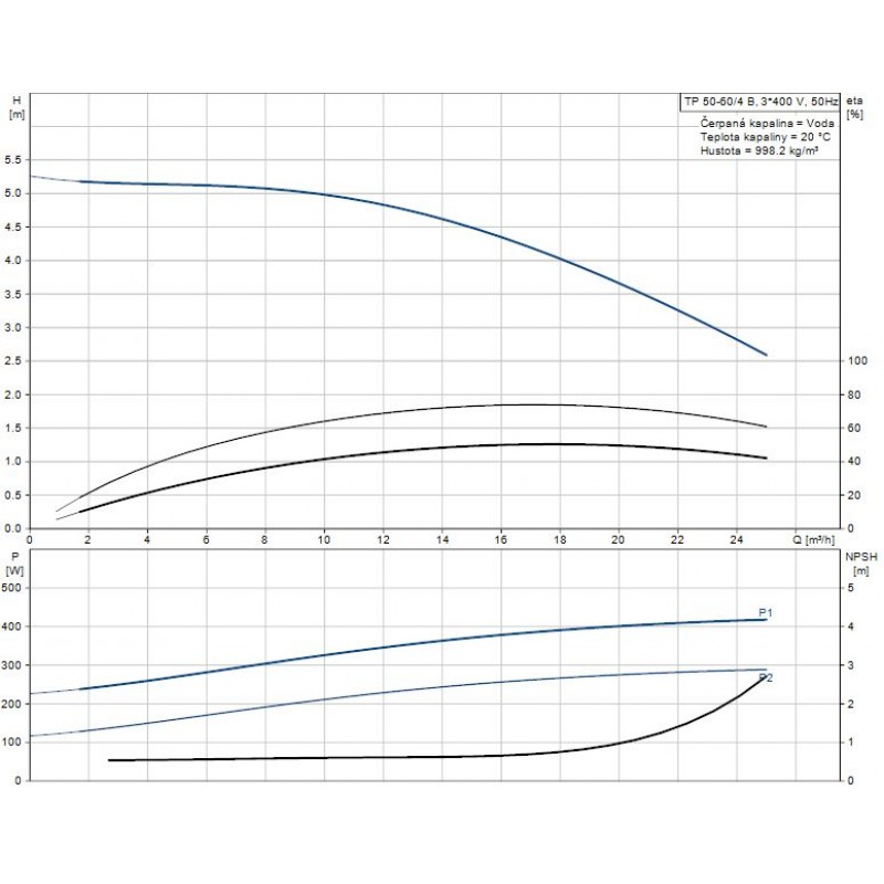 Údaje čerpadla pre dané otáčky: 1430 ot / min