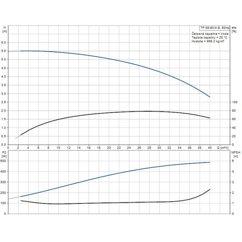 Údaje čerpadla pre dané otáčky: 1420 ot / min