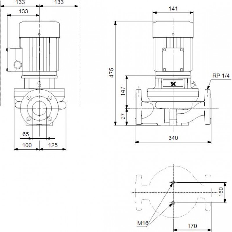 Grundfos In-Line čerpadlo TP 65-60/4 B 0.55 kW 340mm 96402250Použitie: