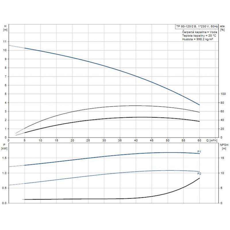 Údaje čerpadla pre dané otáčky: 2910 ot / min