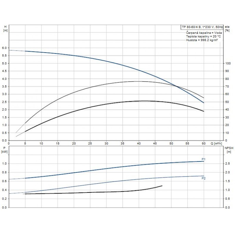 Údaje čerpadla pre dané otáčky: 1420 ot / min