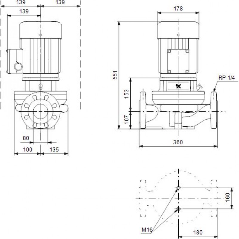 Grundfos In-Line čerpadlo TP 80-60/4 B, PN 10, 0.75 kW 360mm 96402430Použitie: