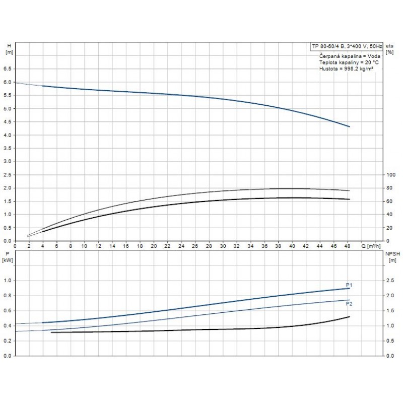 Údaje čerpadla pre dané otáčky: 1420 ot / min
