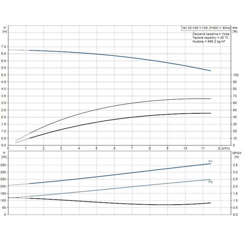 Údaje čerpadla pre dané otáčky: 1400 ot / min