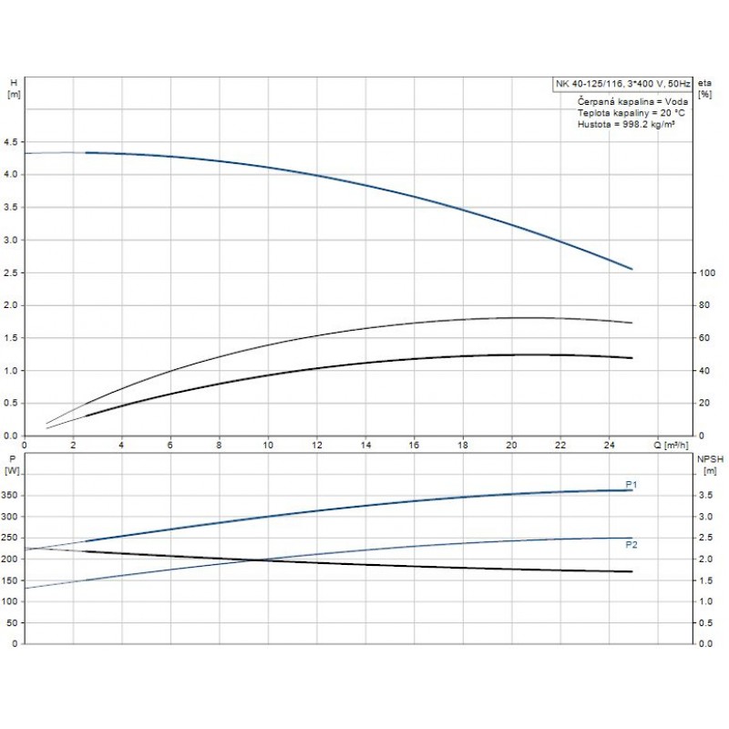 Údaje čerpadla pre dané otáčky: 1400 ot / min
