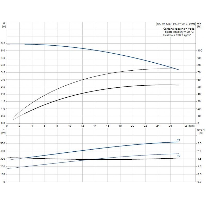 Údaje čerpadla pre dané otáčky: 1400 ot / min