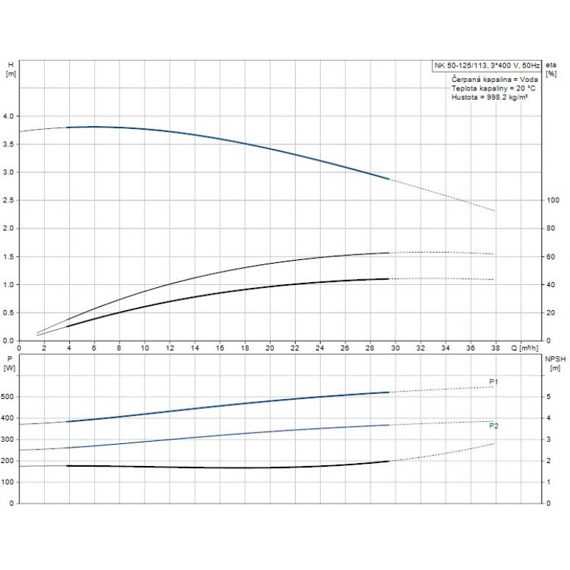 Údaje čerpadla pre dané otáčky: 1400 ot / min