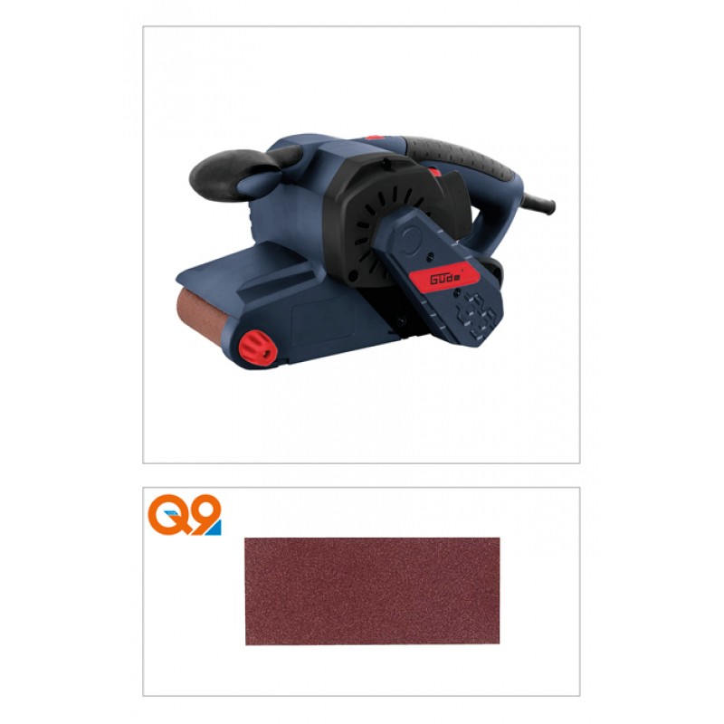 Güde BS 76-800 Pásová brúska 58129Kompaktná pásová brúska, určená pre hrubé brúsenie väčších rovných plôch (› rýchle / efektívne zbrúsení nehobľovaných dosiek / trámov, starých farieb, laku a pod.). 8 rýchlostných stupňov posuvu brúsneho pásu (› rozsah: 0 - 300 m / min.), Systém rýchloupínanie pásov (› napínacie páčka / nastavovaciu skrutku). Motor 800 W, dvojbodový spínač s aretáciou stáleho chodu, 3 m prípojný elektrický kábel H05VV-F. Konštrukcia: ergonomicky tvarované rukoväte s tlmiacimi vložkami, prípojka odsávania. Príslušenstvo: brúsne pásy K80 (2), prachový vrecúško.
