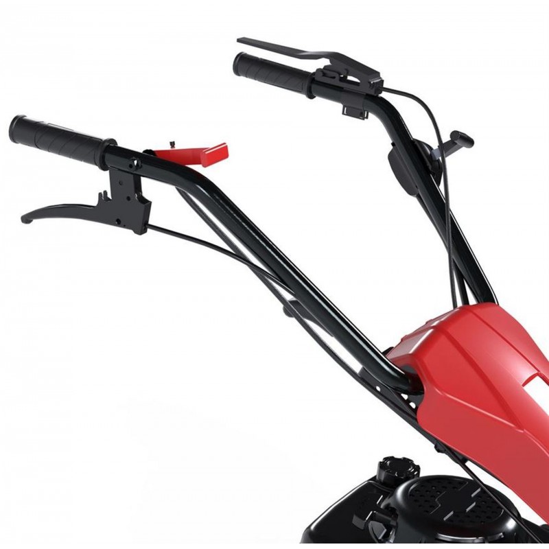Manuálny reverzný štart zabezpečuje jednoduché štartovanie aj po dlhšej dobe nečinnosti. Kosačka ponúka radenie prevodových stupňov pre optimálne ovládanie a pohon. Vďaka pohonu kolies a pneumatikám s terénnym dezénom ponúka silný pohon s rýchlosťou až 3 km/h.