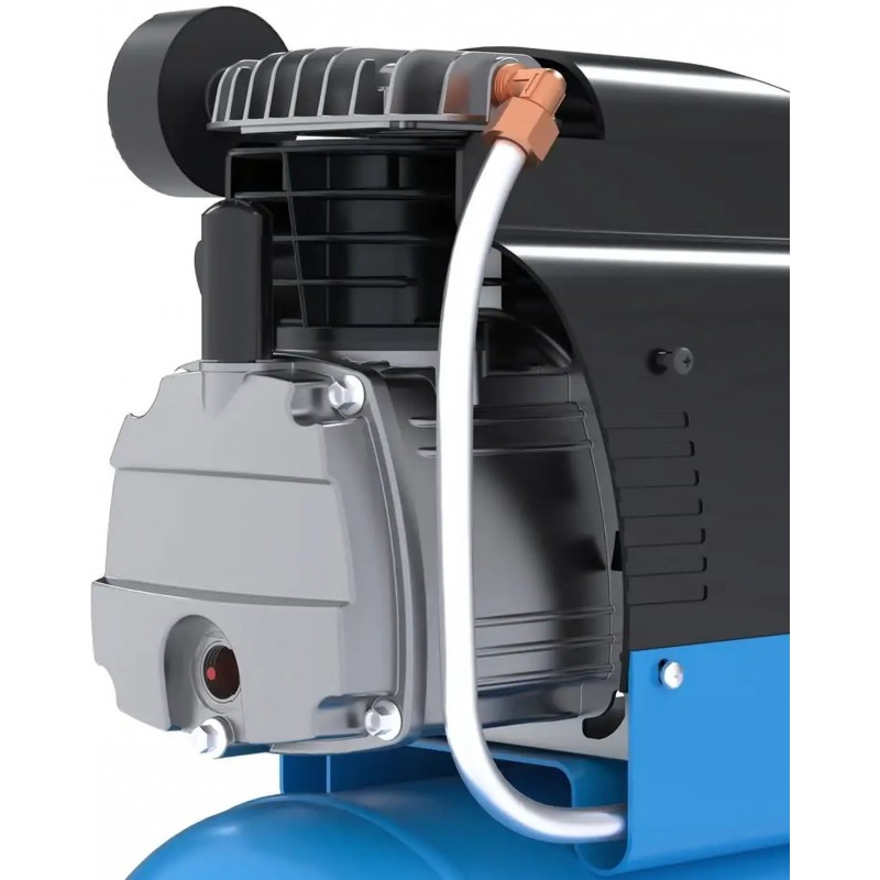 Kompresor je vybavený bezpečnostným ventilom, spätným ventilom a vypúšťacou skrutkou kondenzátu. Integrovaný vzduchový filter chráni mechanizmus pred nečistotami a predlžuje jeho životnosť.