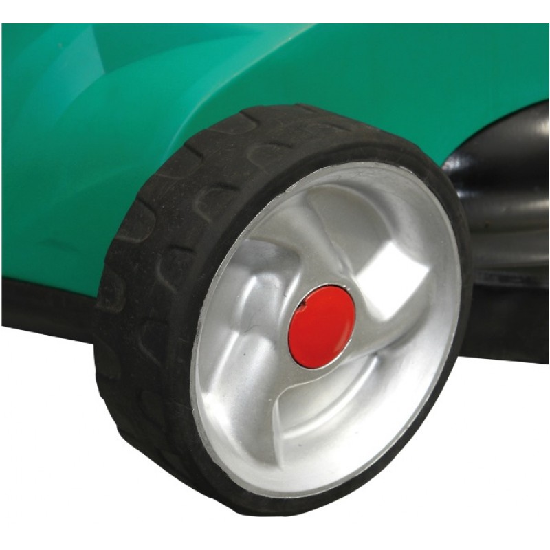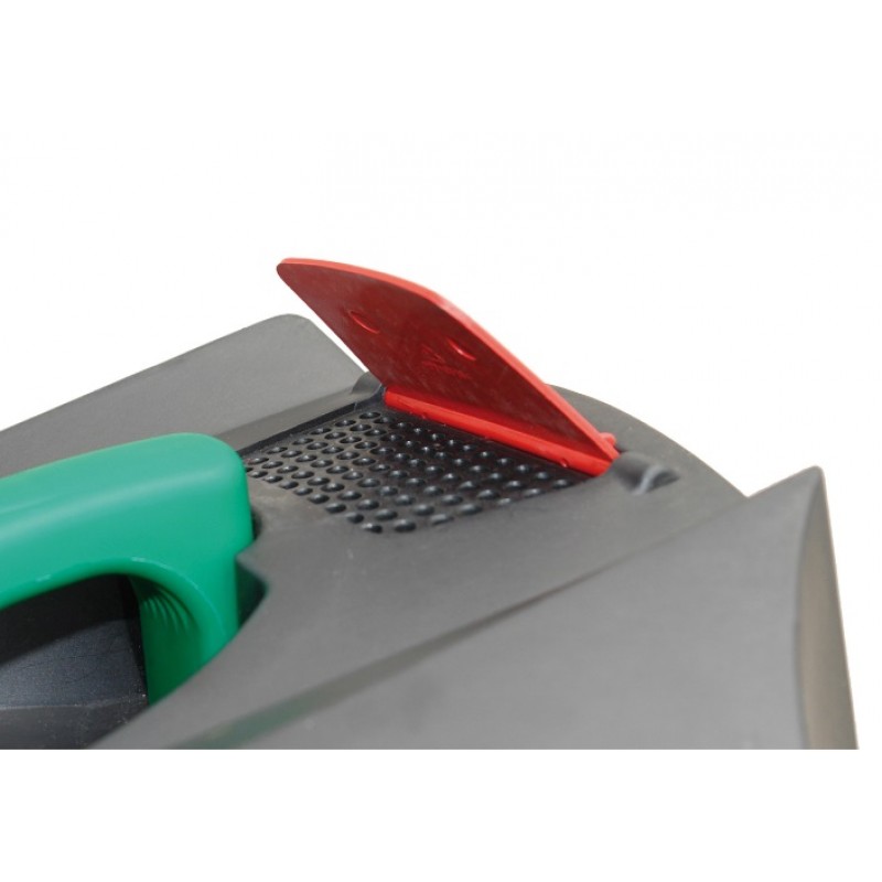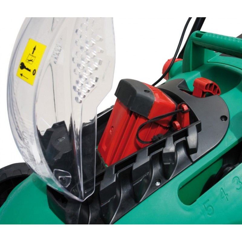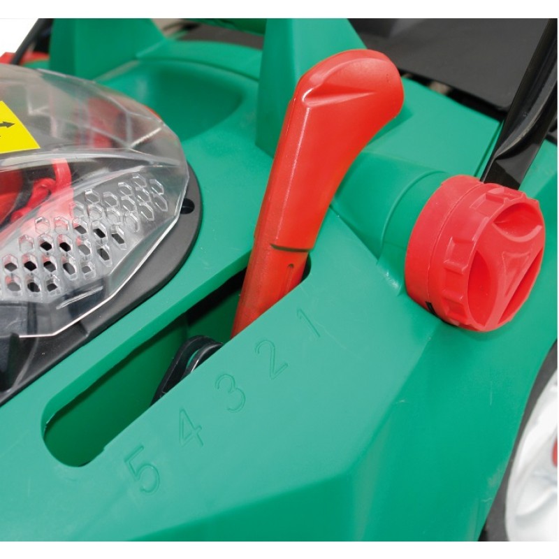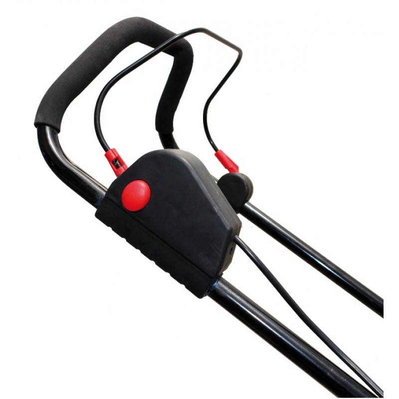 Centrálne nastavenie výšky kosenia (5-stupňové; rozsah: 25 - 75 mm), dvojbodový bezpečnostný spínač, kontaktné kľúč proti náhodnému spusteniu kosačky.
