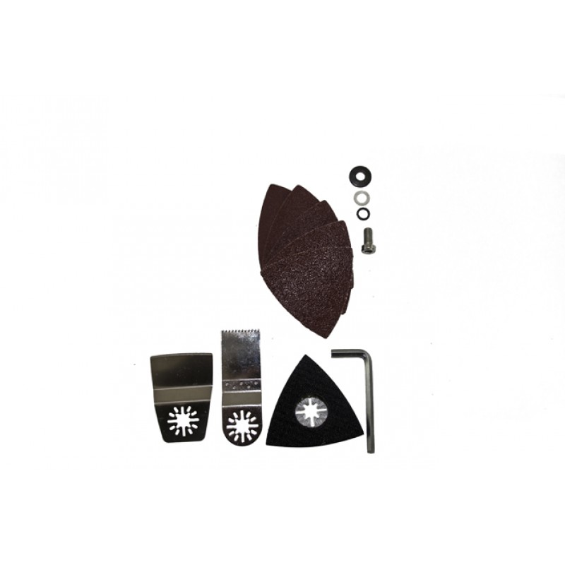 Voliteľné príslušenstvo: sada nástrojov, 13-dielna (› segmentový pílový kotúč, ponorný pílový list, škrabka, brúsne papiere K40 / K60 / K80 / K120 / K240; objednávacie číslo: 58166).