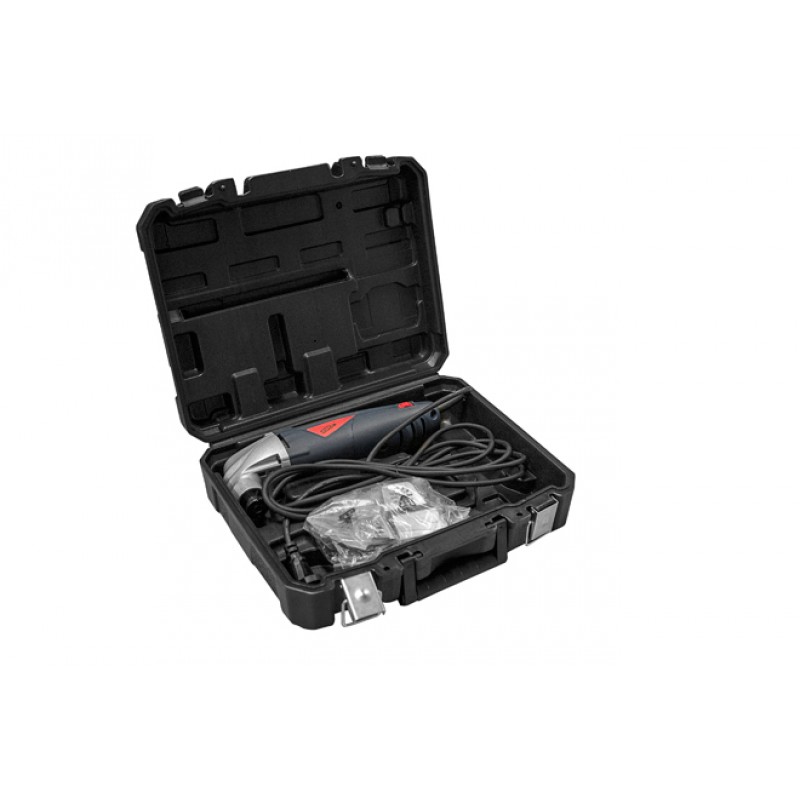 GÜDE MW 220 E Multifunkčné náradie 58119Viacúčelová oscilačná píla, určená na rezanie, brúsenie alebo škrabanie menších plôch (› vyrezávanie otvorov do drevených / sadrokartónových dosiek, zarezávanie plávajúcich podláh, odrezanie klincov / hmoždiniek / rúrok, brúsenie starých farieb / lakov, zoškrabovanie zvyškov lepidiel / tmelov a pod.). Presné nastavenie kmitov podľa typu nástroja / druhu materiálu (› 8-stupňové; rozsah: 11.000 - 21.000 min-1), ľahké / rýchle upínanie brúsnych listov (› suchý zips). Motor 220 W, posuvný spínač s aretáciou stáleho chodu, 3 m prípojný elektrický kábel H05VV-F. Konštrukcia: delta brúsna doska (› 80 x 80 x 80 mm), ergonomicky tvarovaná rukoväť s tlmiacou vložkou. Príslušenstvo: brúsne papiere (5), ponorný pílový list, škrabacie nôž, šesťhranný kľúč, transportný kufrík.