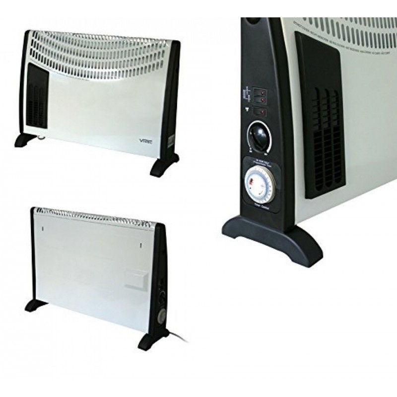 3 vykurovacie stupne (› 750 / 1.250 / 2.000 W), priestorový termostat (› plynulé nastavenie požadovanej zapínacie / vypínacie teploty), časový spínač, ventilátor, ochrana proti prehriatiu.