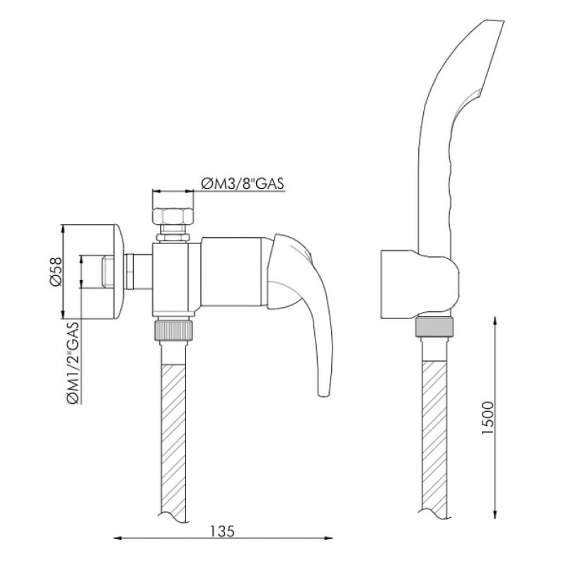 HAKL batérie páková sprchová, beztlaková, dĺžka sprchovej hadice 150 cm, HABAT031Beztlaková batéria páková so sprchou.