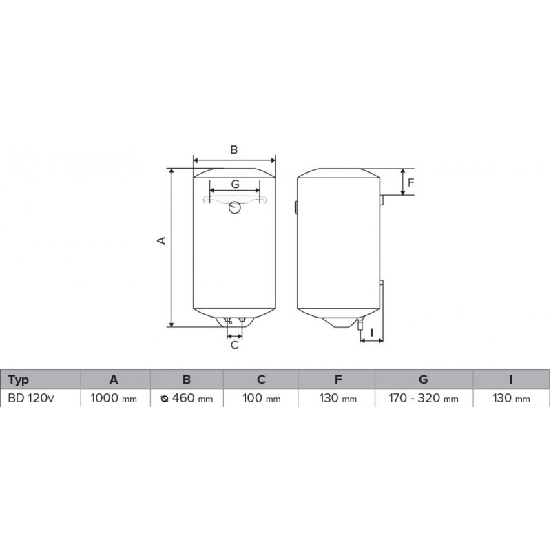 HAKL BD 120v zásobníkový ohrievač vody HABD120VElektrický zásobníkový ohrievač vody, zvislé prevedenie