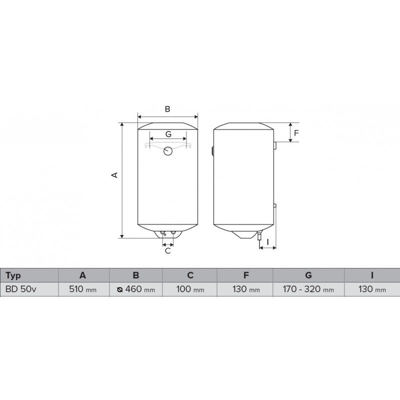 HAKL BD 50V zásobníkový ohrievač vody HABD50VElektrický zásobníkový ohrievač vody, zvislé prevedenie