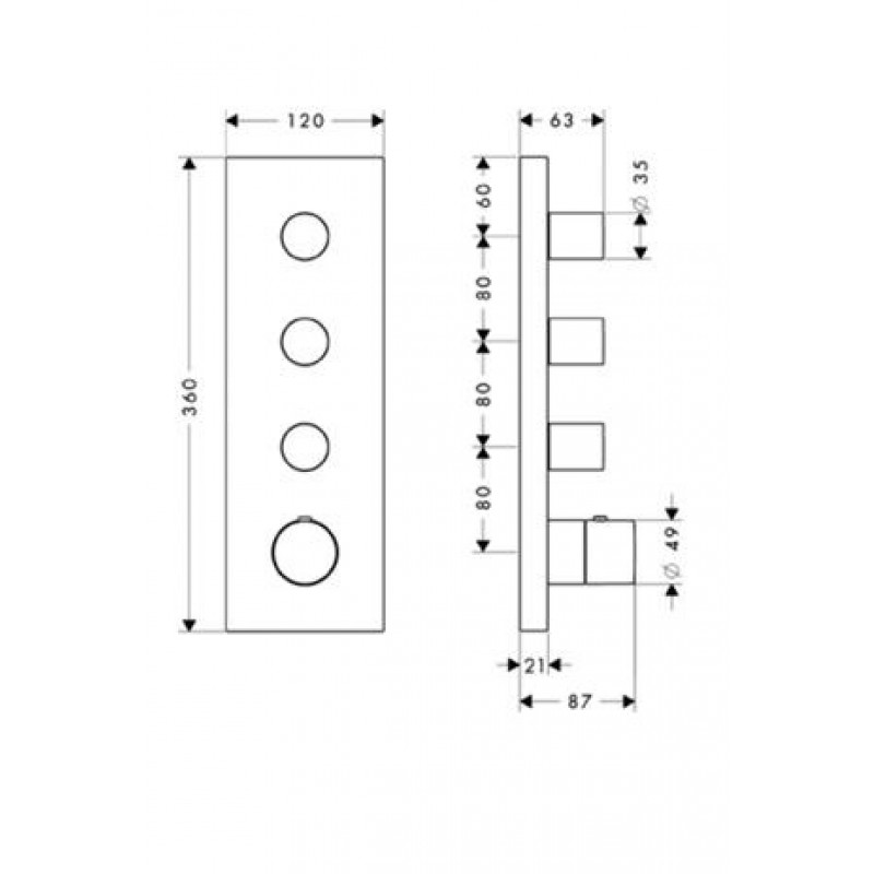 Hansgrohe AXOR STARCK Vrchná sada termostatového modulu DN20, chróm 10751000- Kombinácia termostatu Highflow s 3 uzatváracími ventilmi