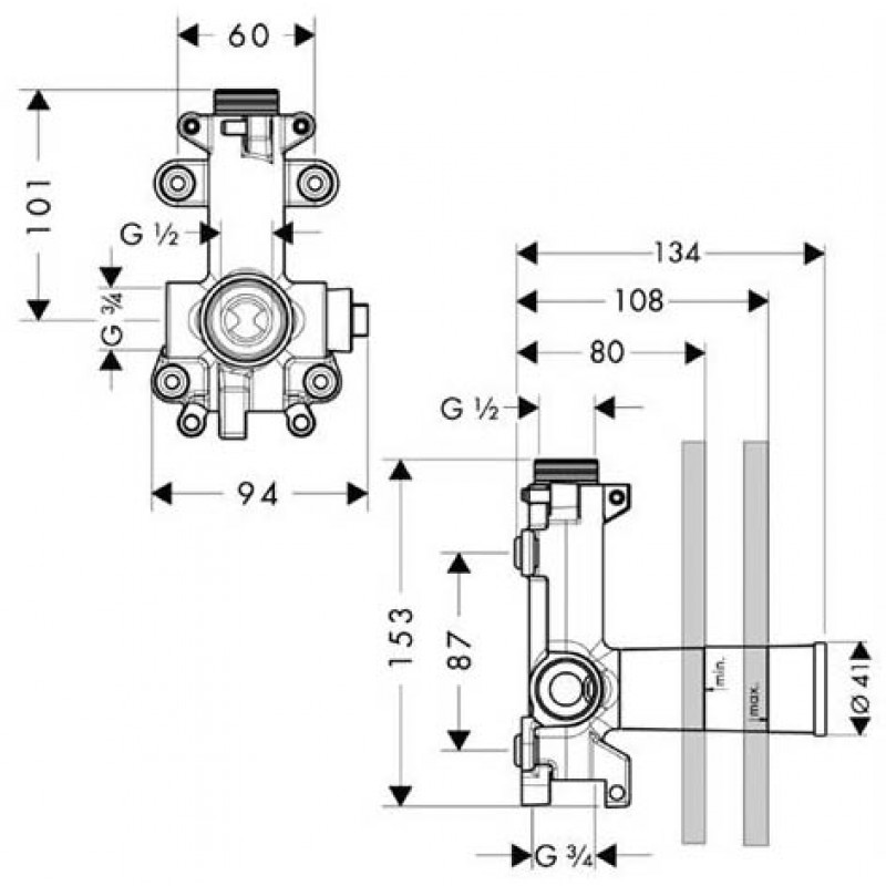 Hansgrohe AXOR STARCK Základné teleso pre sprchový modul DN15 28486180- Montáž s protihlukovou izoláciou