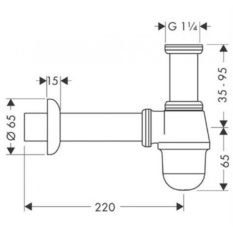 Hansgrohe Bidetový šálkový sifón G 1 1 / 4, chróm 55213000- obsahuje: posuvnú trúbku 95 mm, stenovou trúbku, rozetu o priemere 64 mm