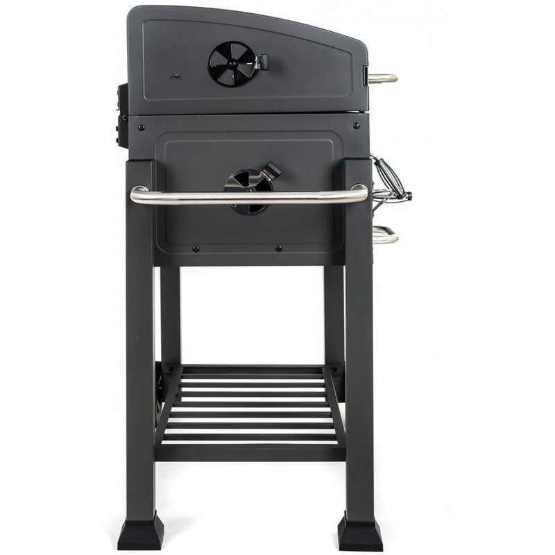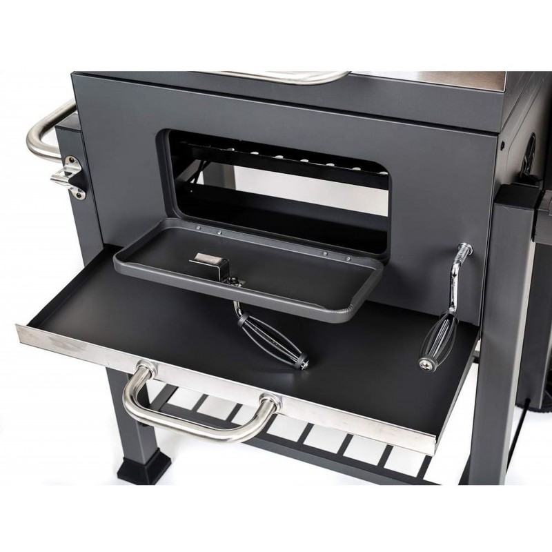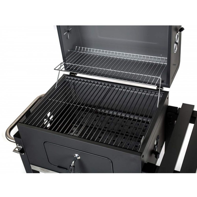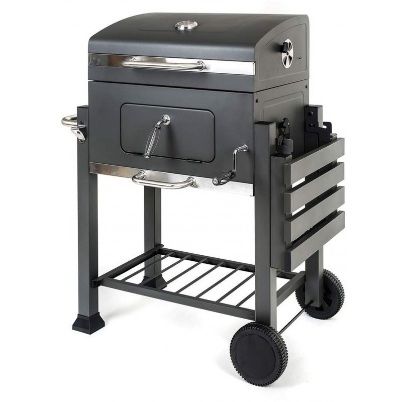 Veľmi praktický a elegantný gril HAPPY GREEN KANSAS kufríkového tvaru pre jednoduchú prípravu grilovacích pokrmov. Uzatvárateľné prevedenie umožňuje uzavrieť spodná časť grilu a vďaka tomu nemôže teplo tak rýchlo uniknúť von. Podobne ako v rúre na pečenie sa pokrm prepečie rovnomerne zo všetkých strán. Špeciálny vetracie otvory poskytujú počas grilovania vyváženú cirkuláciu vzduchu a zabráni vyhasnutí ohňa. Kľukou umiestnenou vápřední časti grilu si ľahko nastavíte výšku roštu. Gril môžete použiť na grilovanie aj bez veka ako klasický gril. Pomocou dvoch plastových koliesok dopravíte gril ľahko na potrebné miesto na vašej záhrade či terase. Komfort vám doprajú aj dve odkladacie plochy jedna výklopná v hornej časti so 4 nerezovými háčikmi na grilovacie náradie a druhá v dolnej časti grilu. Vychytávkou je otvárač na fľaše pripevnený na hrane grile. Povrch grilu je opatrený žiaruvzdornou farbou. Rozmery grilu: 117 x 67 x 108 cm.