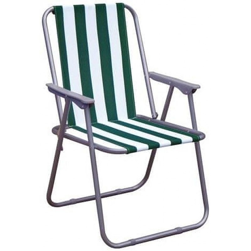 HAPPY GREEN Plážové kresielko - zelený pruhOceľové kresielko, rozmer: 53x47, 5x39/75 cm (v), ľahké skladacie kresielko s textilným polstrom (polyester), kovová konštrukcia, nosnosť 80 kg. Skladacie kreslo s područkama k širokému spôsobu využitia - na pláž, pre rybárov, v kempoch, u modelárov, chatárov a chalupárov atď Konštrukcia je veľmi ľahká (2 kg), kresielko sa ľahko prenáša a dá sa rýchlo zložiť.