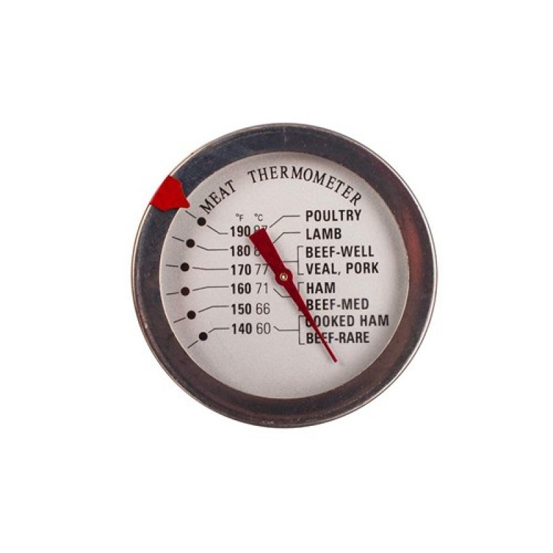 Teplomer na mäso s potlačou symbolov najčastejšie používaných druhov mäsa, meria vnútornú teplotu pečienky od 60 - 87 st. C. Dĺžka ihly 12,5 cm.Dĺžka (cm): 14,3