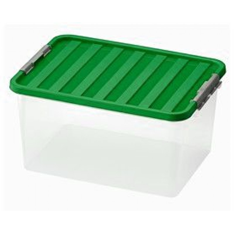 HEIDRUN Box úložný s vekom, 26 x 52 x 36,5 cm, 38 l, transparentná / zelená 1605Plastový úložný box s vekom o objeme 38 l od značky Heidrun.