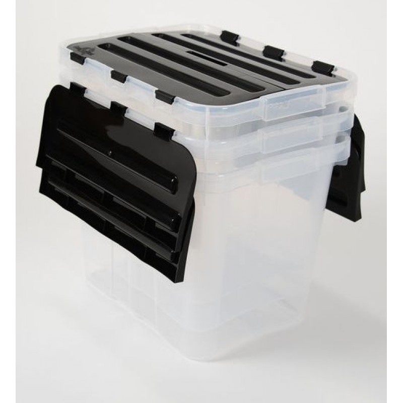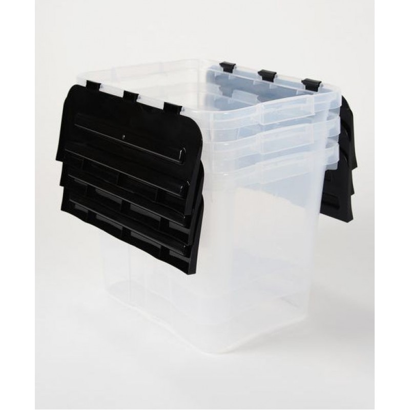 Boxy úložné s integrovaným vekom značky Heidrun, obsah 30l.- Transparentný box s integrovaným čiernym vekom