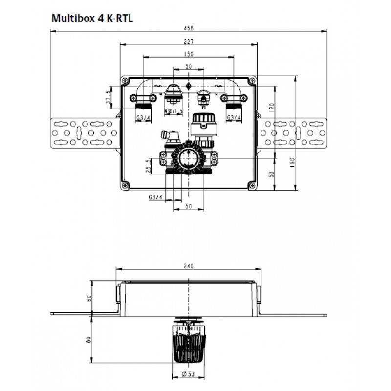 Multibox 4 je určený pre reguláciu podlahového alebo stenového vykurovania alebo pre kombináciu podlahového vykurovania a vykurovanie vykurovacími telesami. Vďaka dvom uzatváracím ventilom, možno uzavrieť prívodné aj vratné potrubie. Kryt umožňuje korekciu montážne pozície v rozsahu 6 ° na každú stranu. Uchytenie krytu je skryté. Farebné prevedenie v bielej farbe alebo chróm. Základné box možno ľahko upevniť do rôznych stavebných konštrukcií a kompenzovať hĺbku uloženia v rozmedzí do 30 mm.
