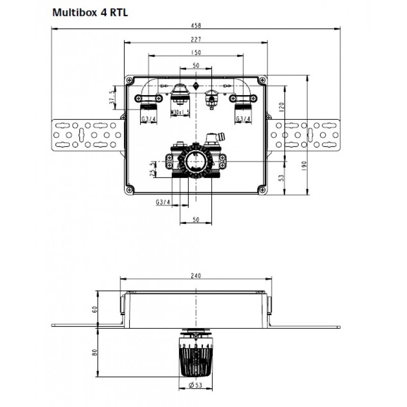 Multibox 4 je určený pre reguláciu podlahového alebo stenového vykurovania alebo pre kombináciu podlahového vykurovania a vykurovanie vykurovacími telesami. Vďaka dvom uzatváracím ventilom, možno uzavrieť prívodné aj vratné potrubie. Kryt umožňuje korekciu montážne pozície v rozsahu 6 ° na každú stranu. Uchytenie krytu je skryté. Farebné prevedenie v bielej farbe alebo chróm. Základné box možno ľahko upevniť do rôznych stavebných konštrukcií a kompenzovať hĺbku uloženia v rozmedzí do 30 mm.