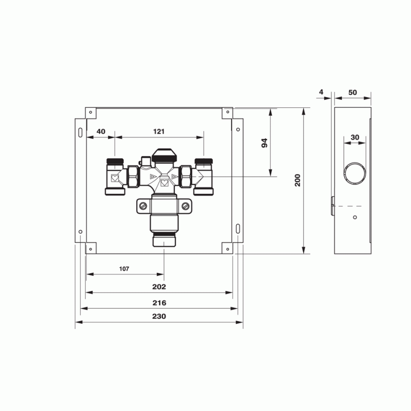 Pre regulovanie teploty miestnosti a pre obmedzenie stredné teploty. Regulácia teploty miestnosti pomocou oddeleného ovládania 1 9330 a 1 7330 alebo termopohonom 1 7710, rúrková prípojka pre zverné šróbenie.