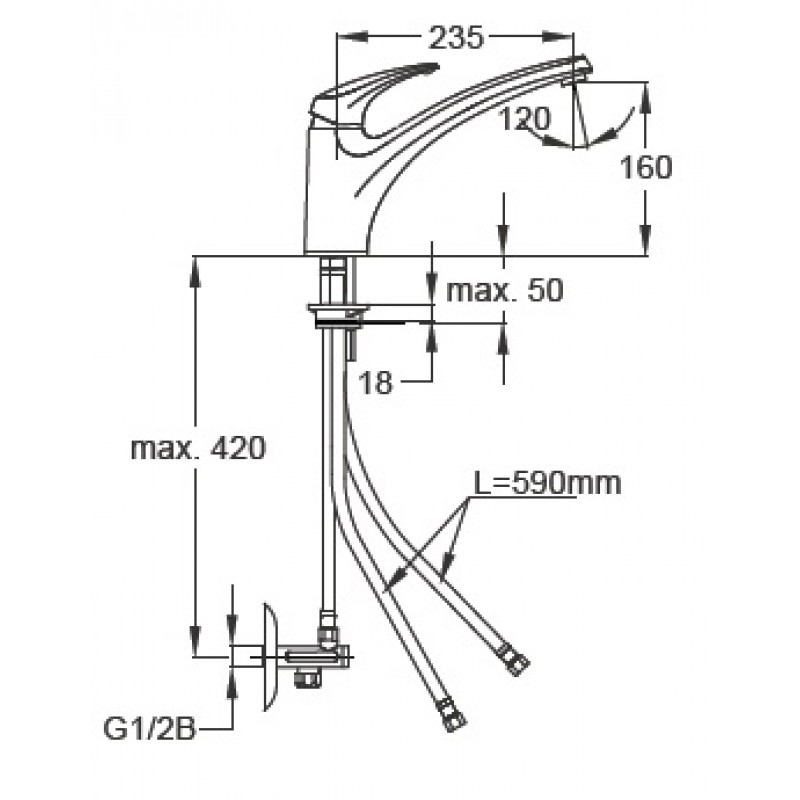 Osový rozstup výtokového ramienka: 235 mm