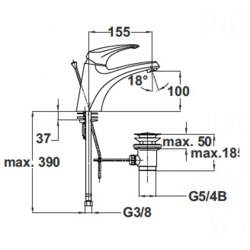 Zmiešavacia batéria má kvalitné odlievané telo, perlátor, kartuš Eco-temp, ktorá možňuje zníženie prietoku teplej vody a ekonomické ovládanie objemového prietoku vody dvomi rôznymi polohami.Osový rozstup výtokového ramienka 155 mm
