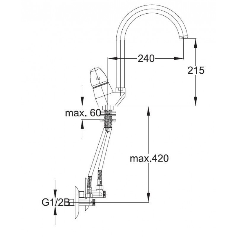 Osový rozstup výtokového ramienka: 240 mm