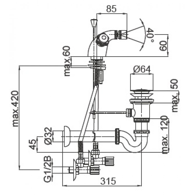HERZ Val bidetová zmiešavacie batérie, horná časť sifónu, 5/4 ", rohové ventily UH07551