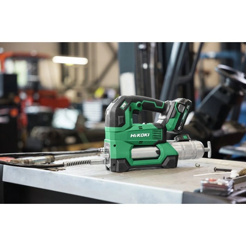 Prácu v ťažšie prístupných miestach uľahčuje integrovaná LED dióda na tele stroja a tiež LED osvetlenie na konci hadice, ktoré zabezpečujú perfektnú viditeľnosť aj v tmavých prevádzkach. Ergonomické vyhotovenie, ramenný popruh a kompatibilita s 18V akumulátorovým systémom HiKOKI robia z tohto modelu ideálnu voľbu pre profesionálov, ktorí požadujú výkonný, mobilný a spoľahlivý mazací lis bez kábla.