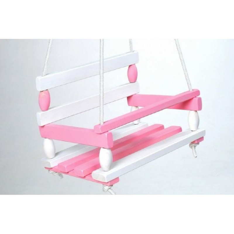 Hojdačka drevo, bielo-ružová, 38x30cm, nosnosť 200kg, v sáčku