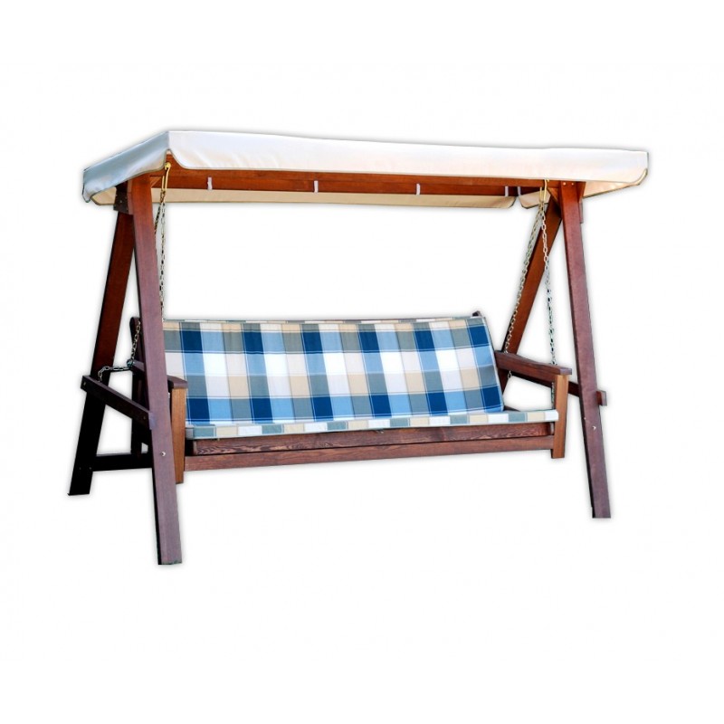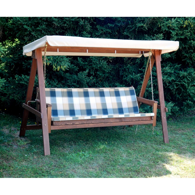 Hojdačka záhradná ADELAIDA béžová 59060Robustná konštrukcia z moreného borovicového dreva, ktoré odoláva vode i slnku. Operadlo je možné sklopiť a vytvoriť tak lôžkovú úpravu. Vysoké a pohodlné podušky vrátane látkovej striešky. Farebné prevedenie: béžová strieška a polstorvání.