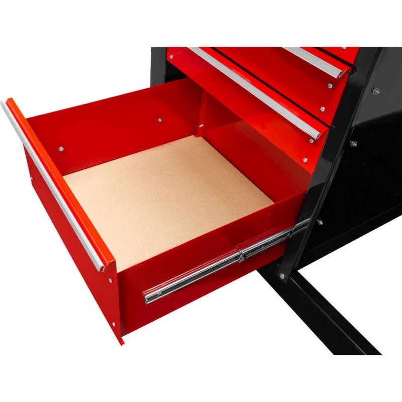 • 4x zásuvky s guličkovým vedením pod pracovnou doskou a 2x objemné odkladacie skrinky nad pracovnou doskou