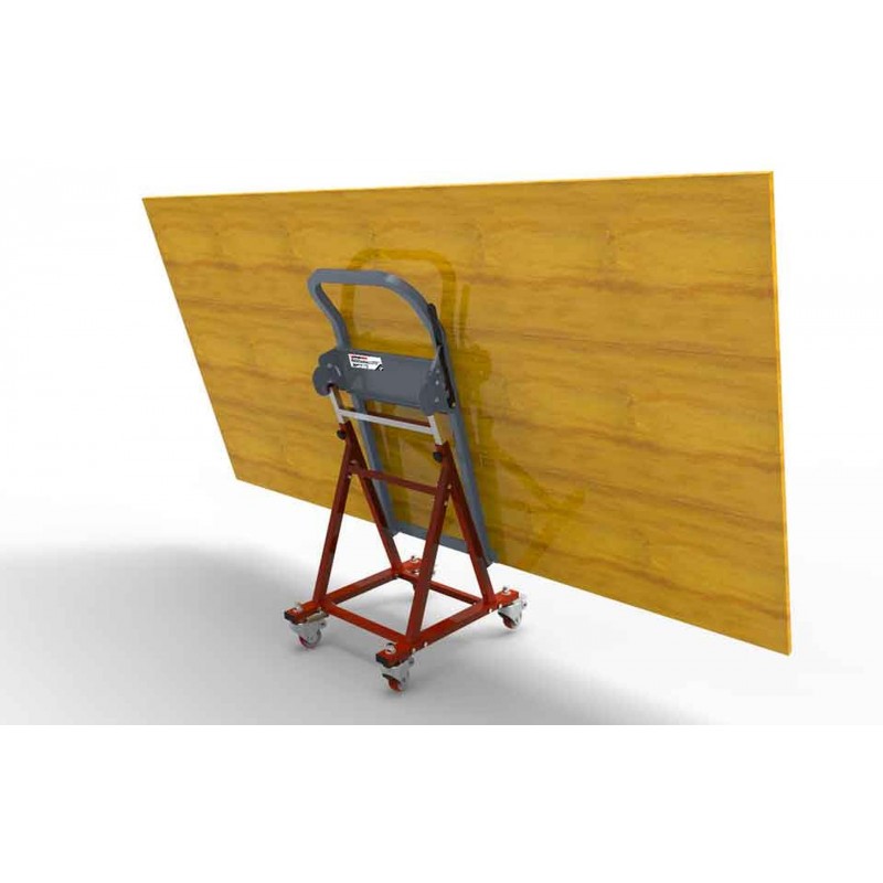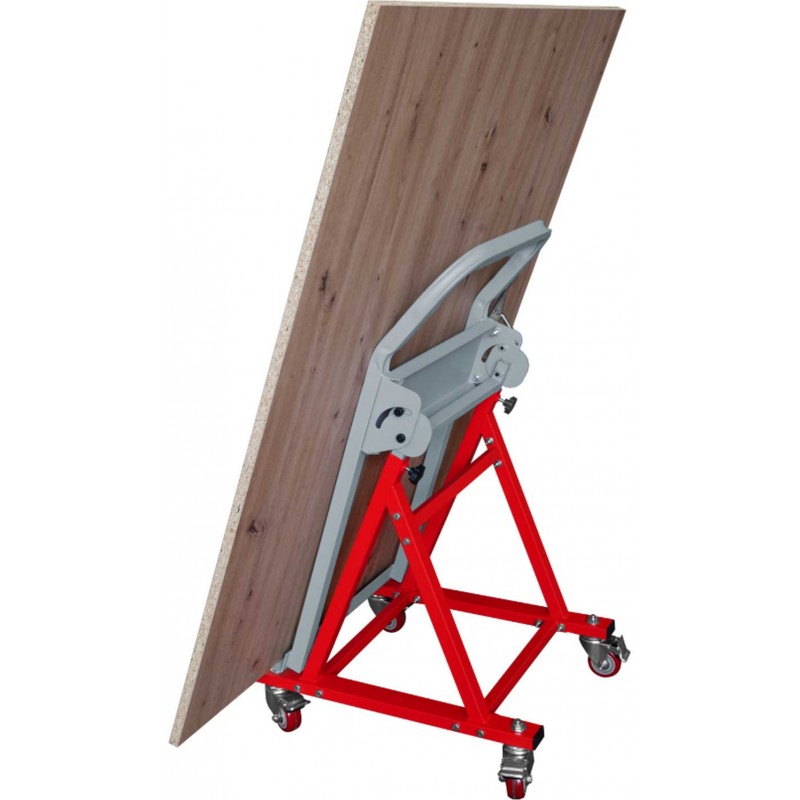 Vozík na dosky HOLZMANN PW3040KIPP pre maximálne zaťaženie 136 kg a s otočnou prepravnou podperou (prepravná poloha vo zvislej polohe a vodorovná poloha pre vykládku).
