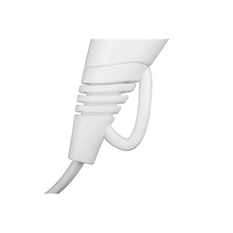 Cestovný fén Hyundai HD 106 B zaujme praktickým a elegantným dizajnom v bielom prevedení s modrou potlačou.