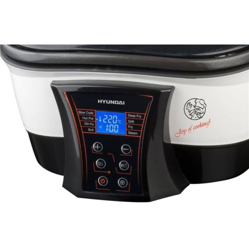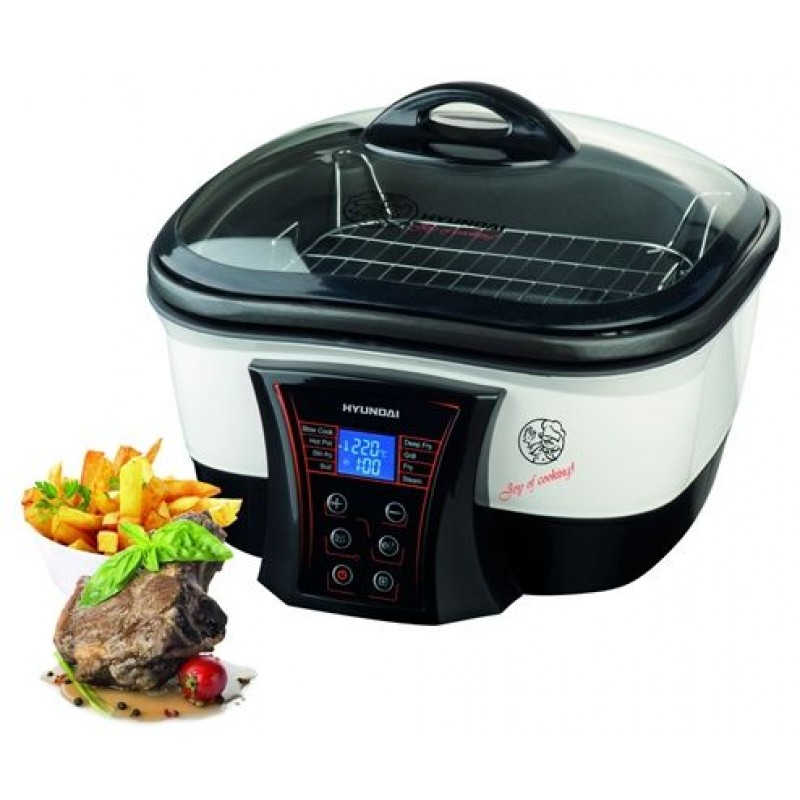 Multifunkčný hrniec Hyundai MFC 03 dokáže variť, zapekať, fritovať, grilovať aj vyprážať. Zastúpi aj pomalý či parný hrniec, možno ho využiť ik čínskemu varenie Hot Pot. Disponuje plynulou reguláciou teploty v rozsahu 50 - 240 ° C, nepostráda desaťhodinový časovač, ani funkciu Keep Warm pre udržanie teploty.