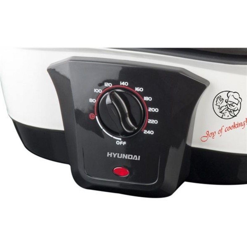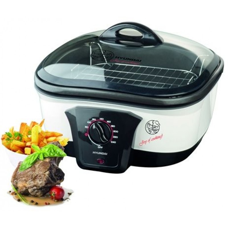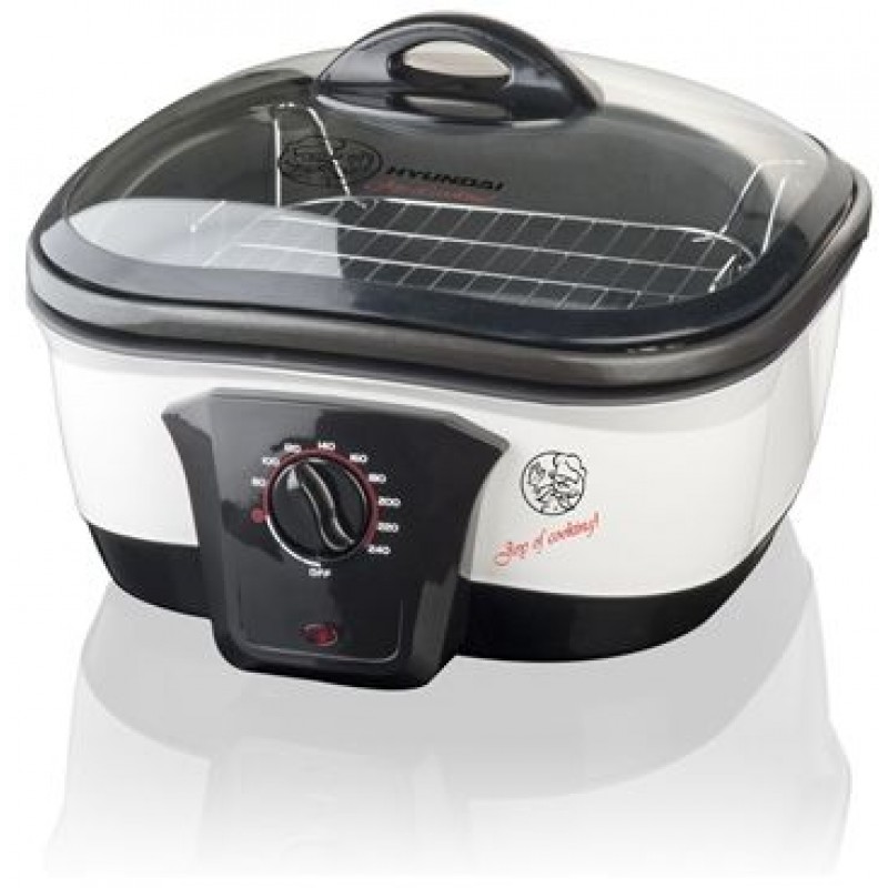 Multifunkčný hrniec Hyundai MFC 04 dokáže variť, zapekať, fritovať, grilovať aj vyprážať. Zastúpi aj pomalý či parný hrniec, možno ho využiť ik čínskemu varenie Hot Pot. Disponuje mechanickým termostatom s plynulou reguláciou teploty v rozsahu 80 - 240 ° C. Jeho použiteľný objem činí 4 l, naplniť ho možno max. 2,9 l tekutín.