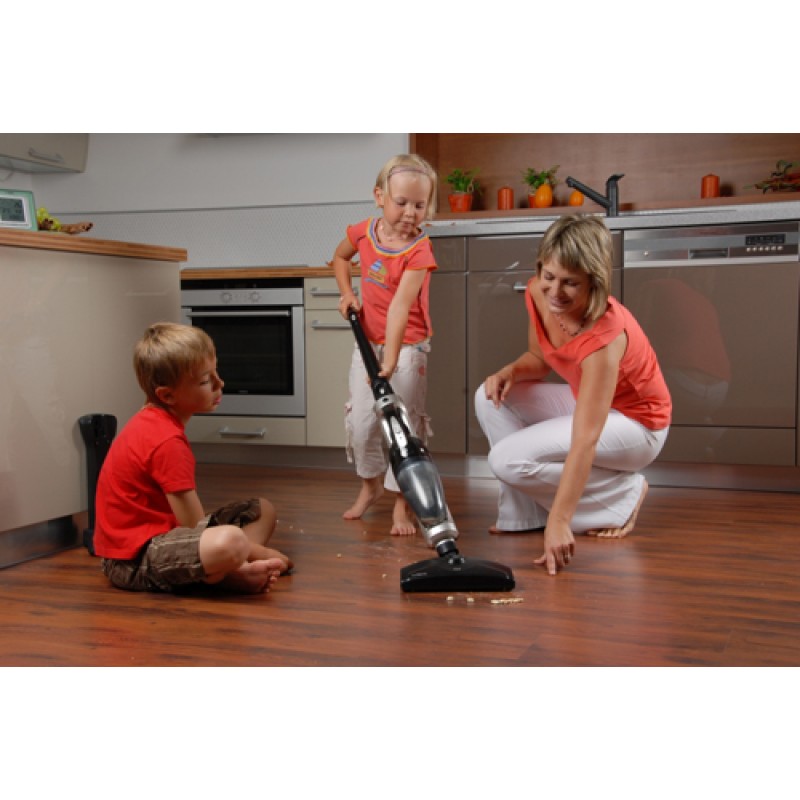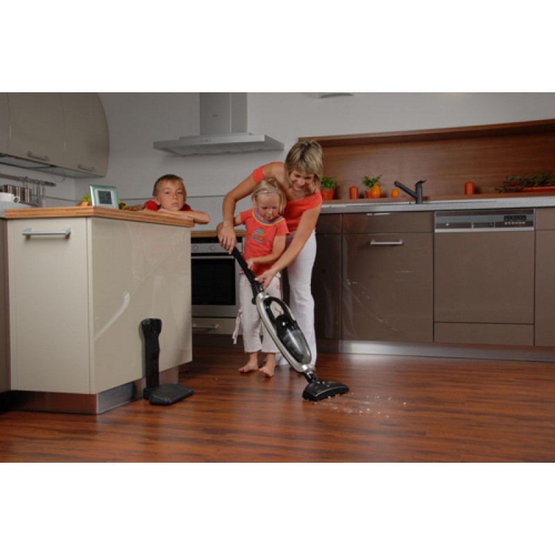 Tento akumulátorový vysávač 2v1 oceníte pri vysávaní schodiska aj automobilu. Je vybavený rotačnou kefou, jeho prednosťou je aj bezvreckový prevádzku.