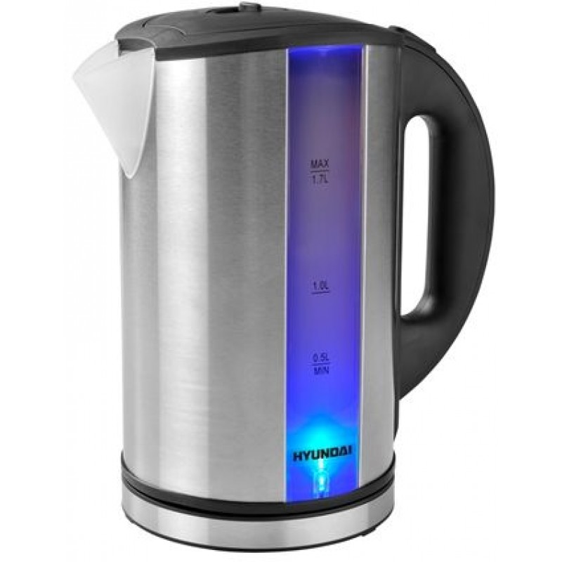 Rýchlovarná kanvica Hyundai VK 113 v nerezovom prevedení s netradičným dizajnom má objem 1,7 la je vybavená skrytým vyhrievacím telesom s plochým nerezovým dnom, ktoré výrazne uľahčuje údržbu.